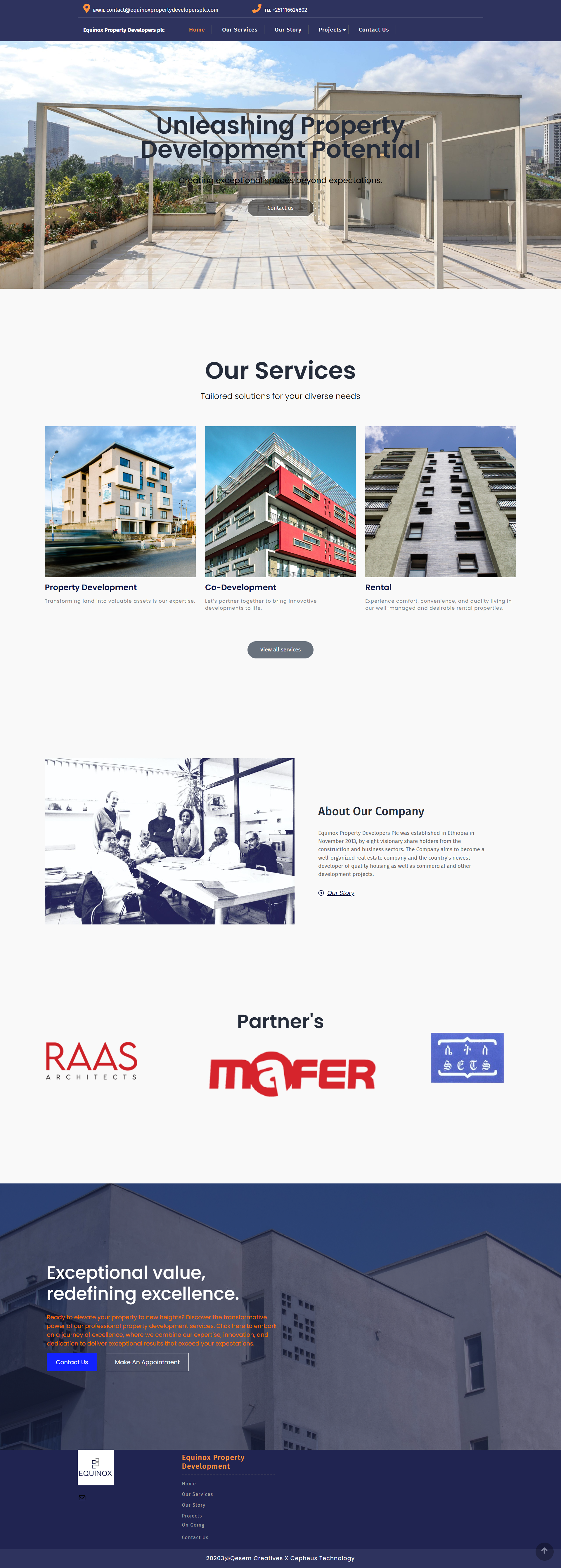 We designed a sleek, professional website for Equinox Property Developers to showcase their real estate projects and vision. Built to reflect their industry expertise and modern approach, the site enhances their digital presence and investor appeal.