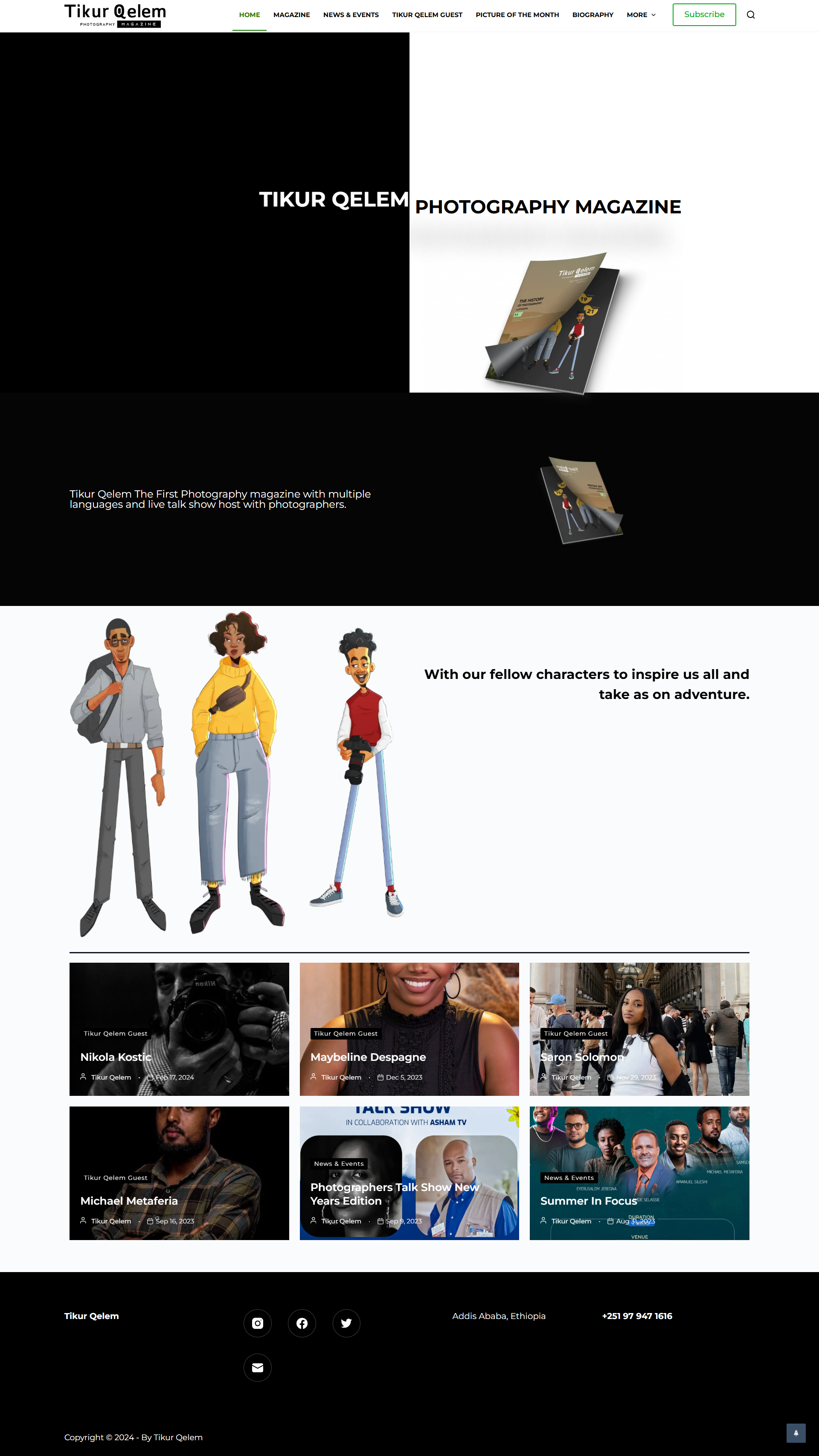 We built a bold and artistic website for Tikur Qelem, the first multilingual photography magazine in Ethiopia with a live talk show feature. The site captures the creative energy of the brand, offering an immersive platform for photographers and visual storytellers.