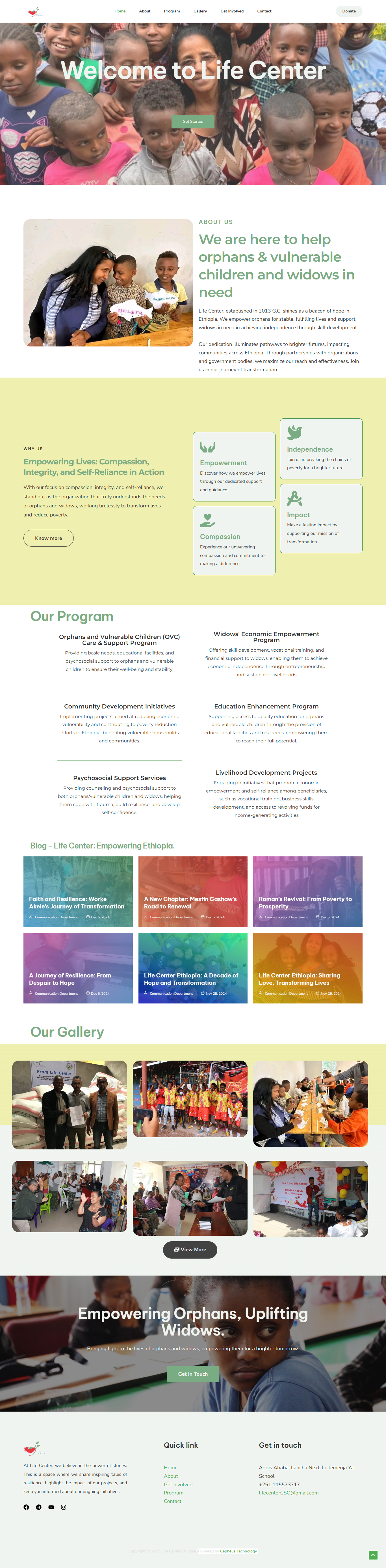 We designed a heartfelt, mission-driven website for Life Center Ethiopia, an organization empowering orphans and widows across Ethiopia since 2013. Built with clarity and compassion, the site highlights their impact, invites partnerships, and inspires support for their life-changing work.