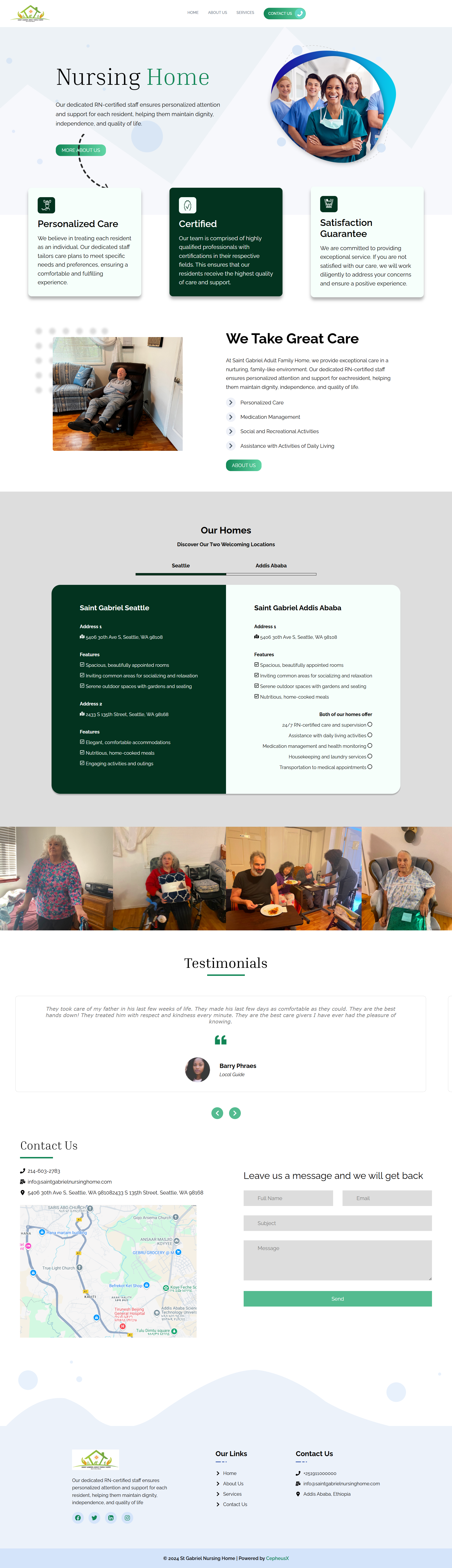 We developed a custom website using HTML and Tailwind CSS for St. Gabriel, highlighting their compassionate, RN-certified care. The site emphasizes personalized support, dignity, and quality of life for residents, with a clean and accessible design.