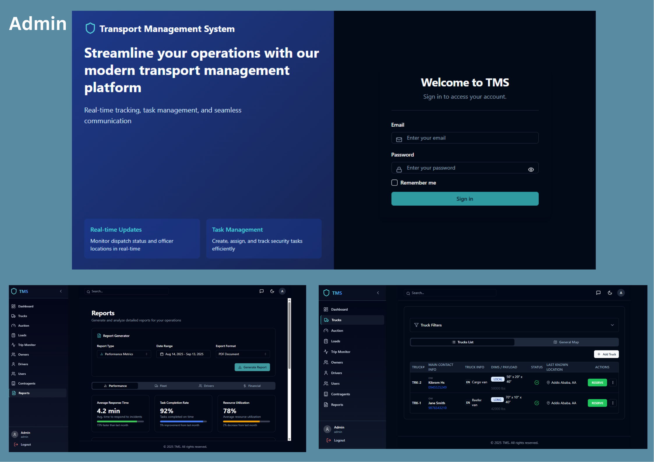 We developed a robust web and mobile platform designed to simplify transport operations. The system features real-time tracking, smart task management, and seamless communication tools, empowering dispatchers, drivers, and admins to work efficiently. With live updates and streamlined workflows, it delivers transparency, control, and productivity across the entire transport process.